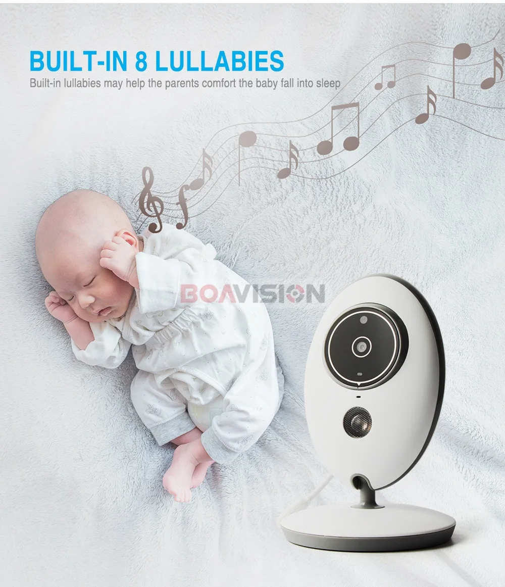 Built-In 8 Lullabies - Baby monitor with camera has built-in lullabies may help parents put their newborn to sleep. Two-way communication and lullabies Two relaxing melodies and two sets of ambient noises will soothe your baby to sleep.