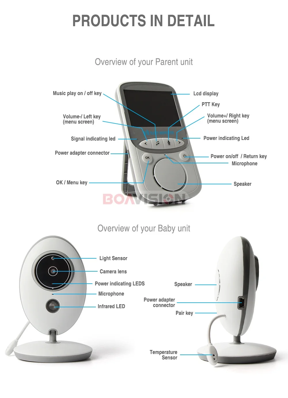 BOAVISION Portable 2.4 Inch LCD Wireless Baby Monitor & Walkie Talk Camera
