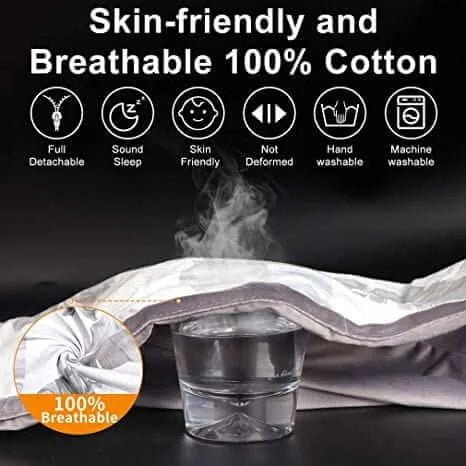Love the thickness of the fabric and cleanness of the white inserts. It is so soft and fluffy. Comes in a vacuum sealed plastic.